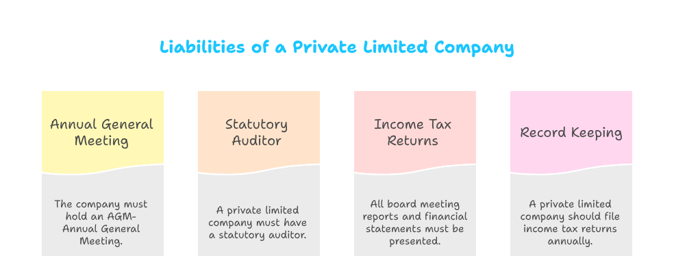 A Private Limited Company is a privately owned business where shareholders enjoy limited liability. It keeps financial information confidential and provides the flexibility to conduct operations, generate profits, and carry out lawful business activities with ease.